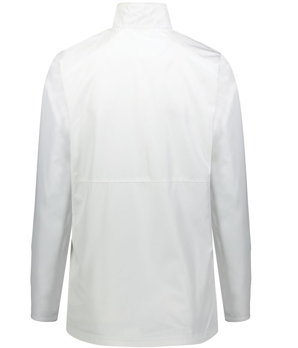 - Quarter zip pullover style with zipper garage
