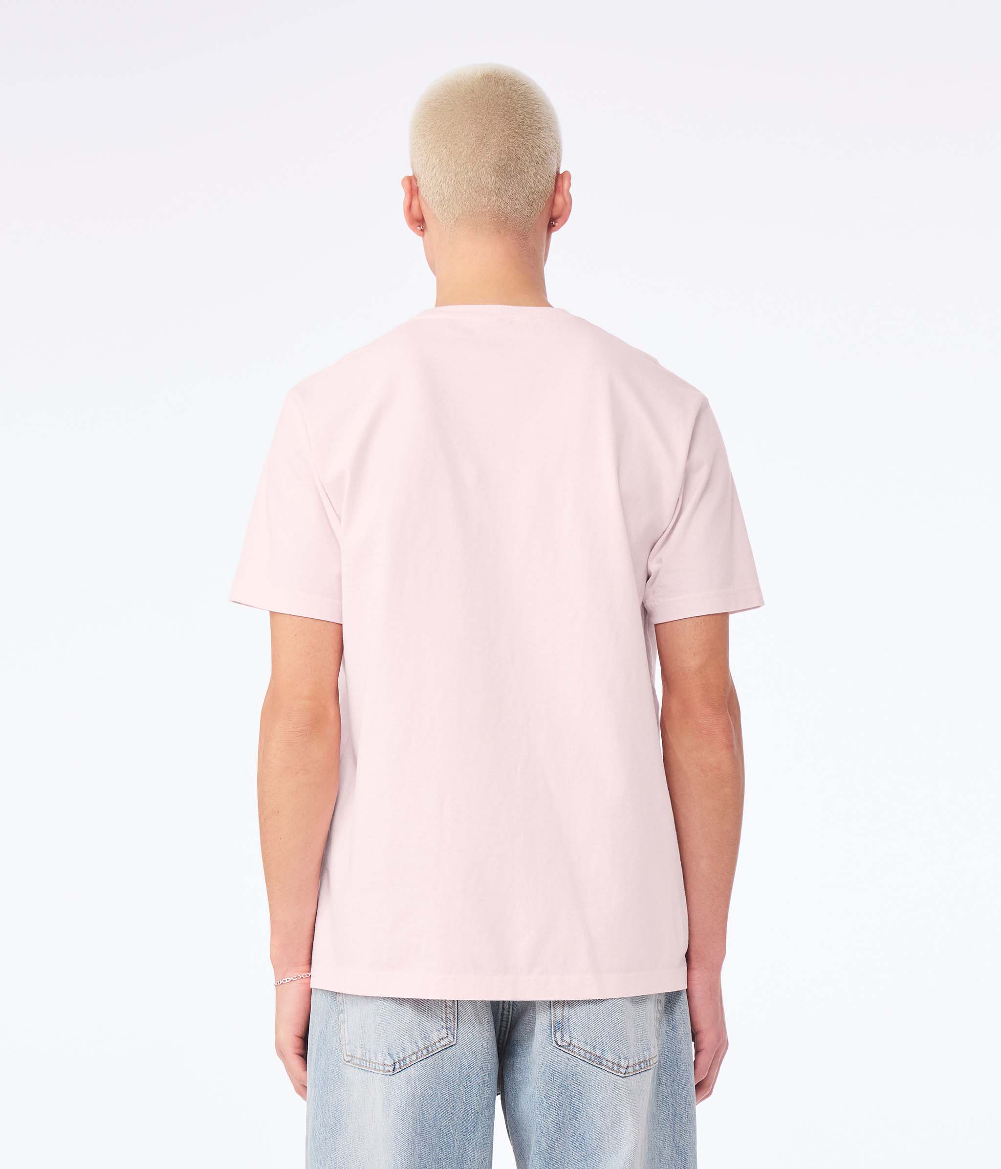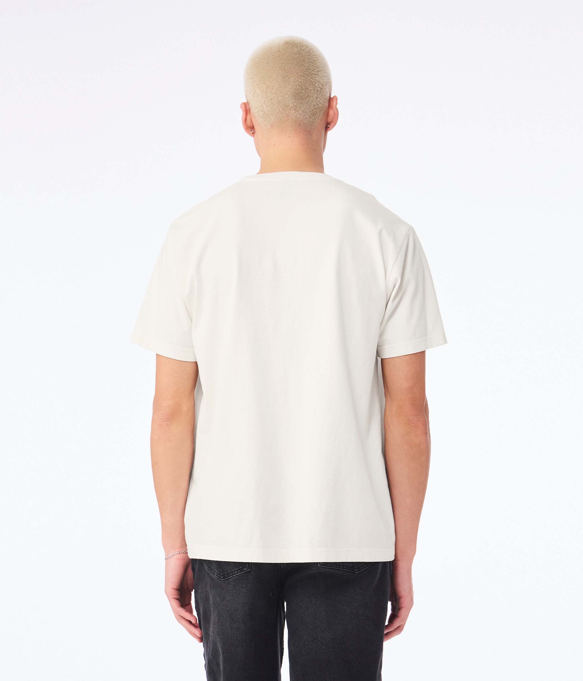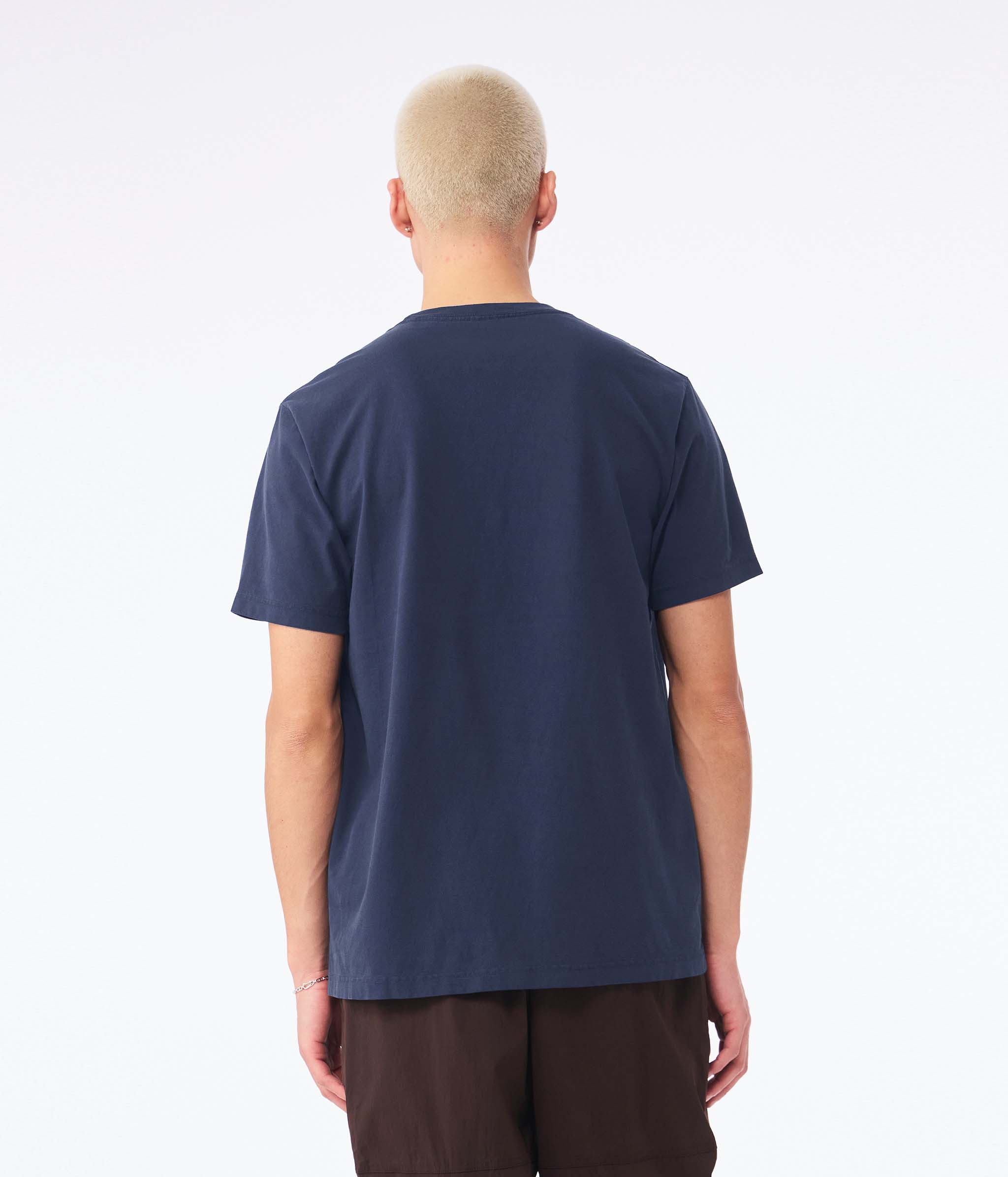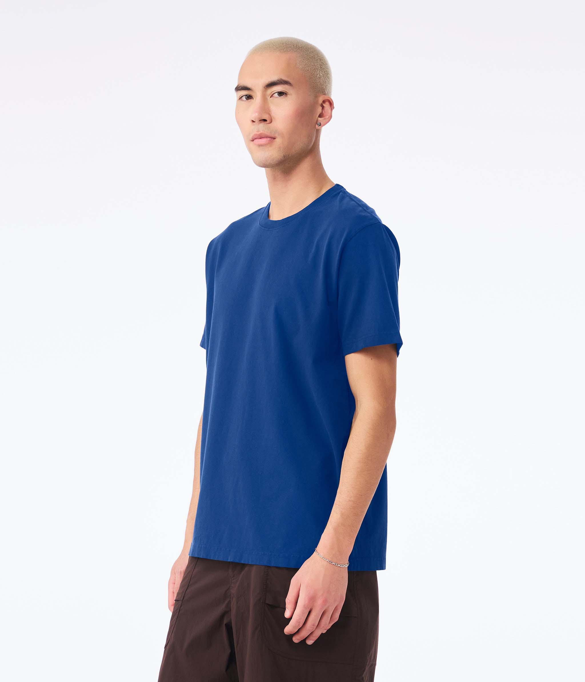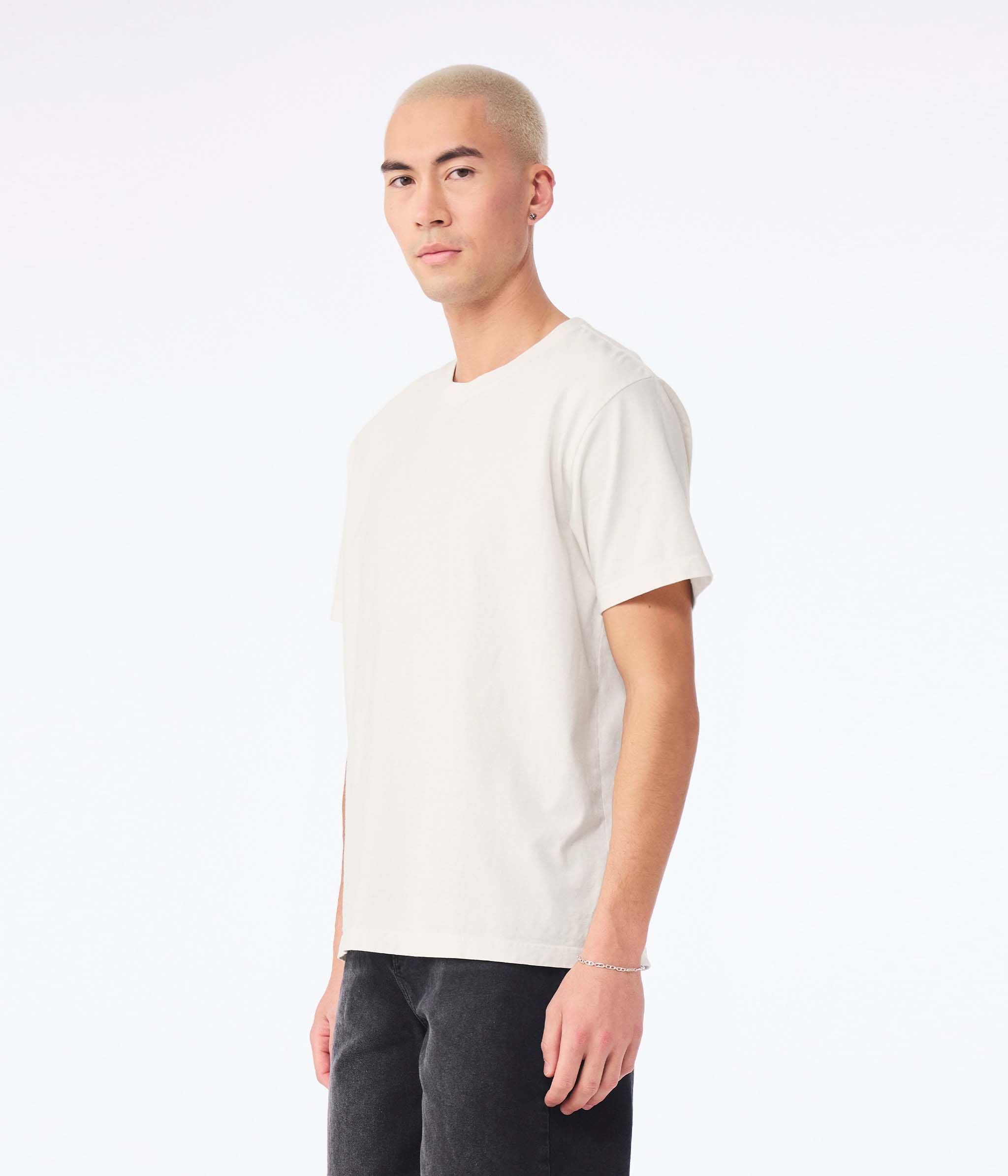 - 7/8" ribbed neckband with double-needle topstitching